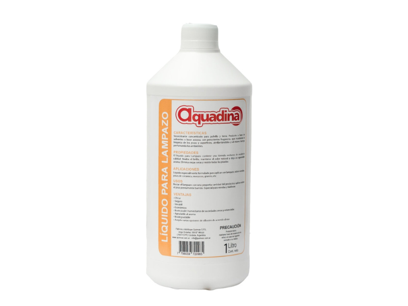 Líquido de limpieza para lampazos. Brillador acuoso. Secuestrante concentrado para polvillo y tierra. Producto a base de solventes o base acuosa, con persistentes fragancias, que mantienen la limpieza de los pisos y superficies, abrillantándolos y al mismo tiempo perfumando los ambientes.