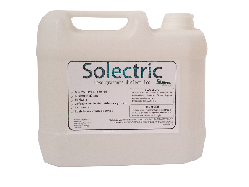 Solectric , es un solvente dieléctrico de alta capacidad dieléctrica, específicamente formulado para eliminar humedad en motores eléctricos, tableros y cables que conducen electricidad.